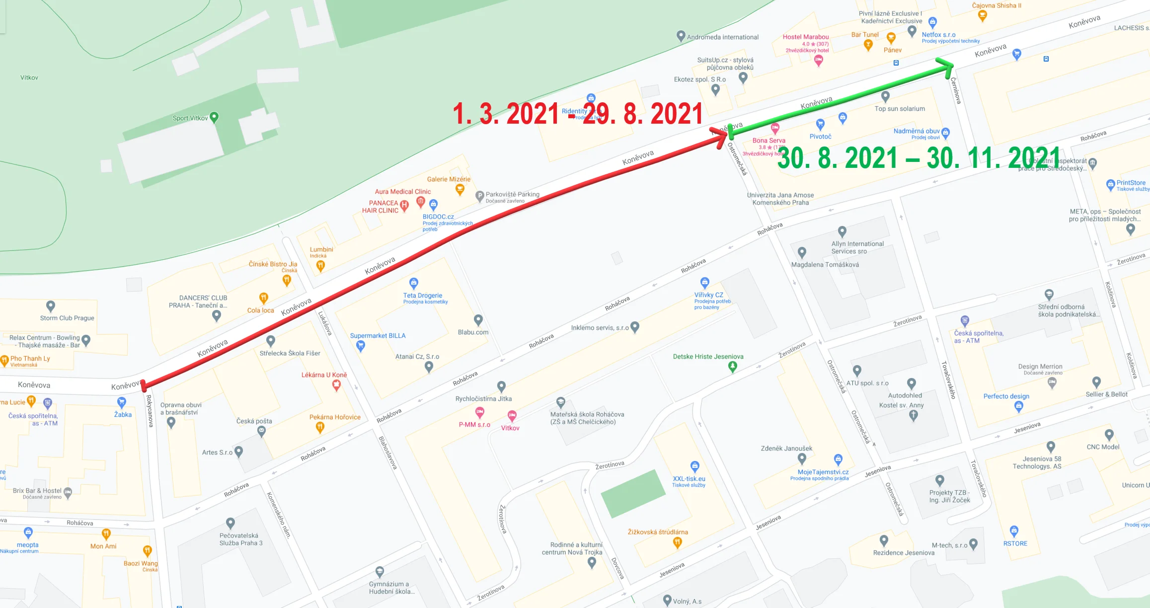 V pondělí 1. března 2021 bude v ulici Koněvova zahájeno pokračování 1. etapy kompletní rekonstrukce, která bude z důvodu zachování maximální možné obslužnosti území rozdělena na dvě části, a to na úsek Rokycanova—Ostromečská (1. 3. — 29. 8. 20