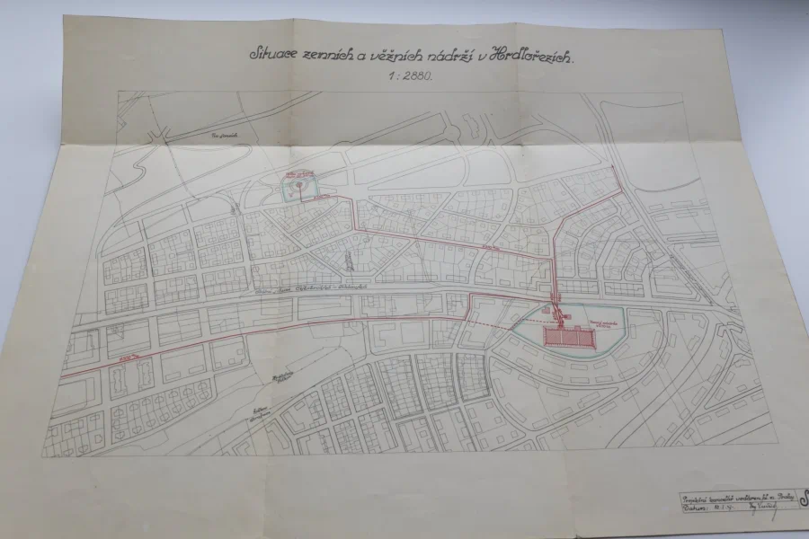 Protože stojíme na Jarově, název vodojemu může být matoucí. Vznikl ale už v roce 1932, kdy oblast patřila k Praze XI — Hrdlořezy a spadala pod okres Žižkov. Teď areál zásobuje Hrdlořezy, Jarov a částečně i Žižkov. Díky složité síti může vodu distribuovat i do jiných oblastí — například tam, kde došlo k nehodě. „Kapacita vodojemu je zhruba 24 tisíc metrů krychlových a momentálně je na nás napojených 54,5 tisíce obyvatel. Za běžného provozu obsluhuje systém na dálku dispečink. Pokud dojde k závadě, řešíme ji samozřejmě na místě,“ říká manažer provozu Petr Okrouhlický.