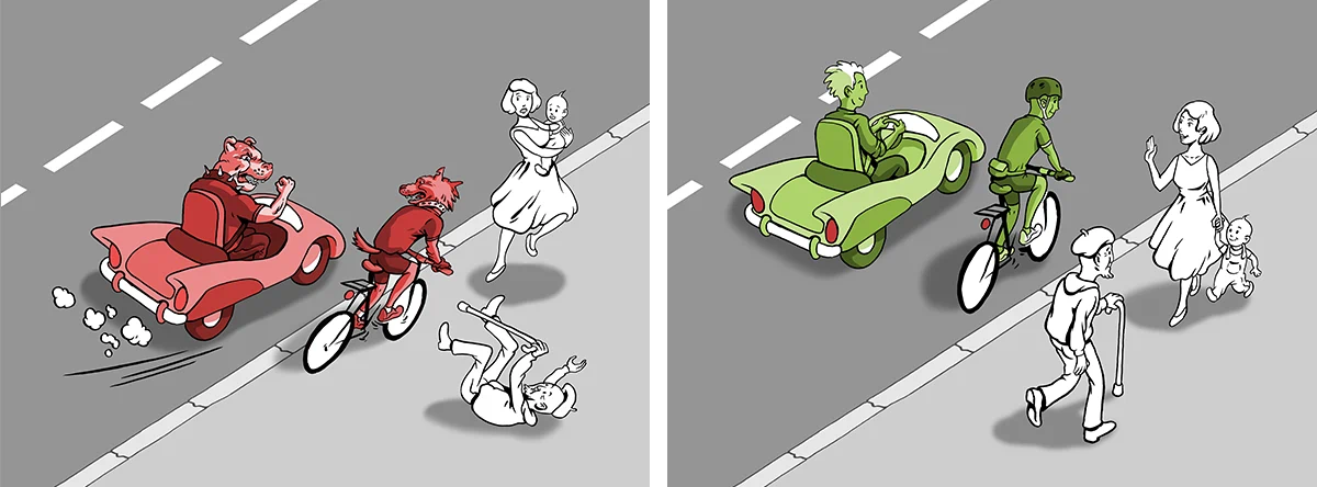 Prvním z nich je to, že pokud jede cyklista po silnici, má přednost v jízdě jako ostatní řidiči. Při křížení vedlejší ulice tak může plynule pokračovat v jízdě po hlavní silnici. Naopak při překonávání komunikace po paralelním přechodu pro chodce by takovou přednost neměl. Tu mají totiž jen pěší – cyklista by tedy musel sesednout z kola a pokračovat na druhou stranu po svých.