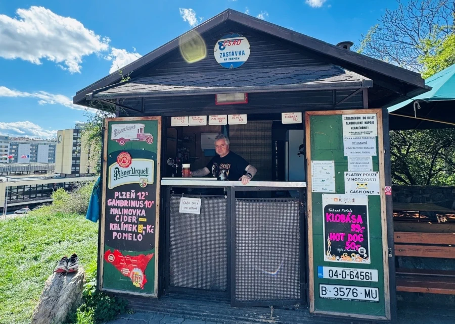 Výčepní stánek na Parukářce naproti hospůdce znovu otevřel. Dáte si tu pivo, limču i hot dog nebo klobásu.