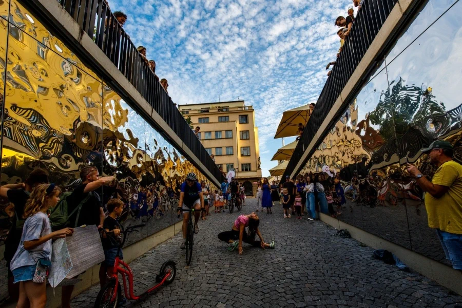 Slavnostní odhalení originálního výtvarného díla reflexe_zrcadlení, které nově zdobí vstup do tunelu ze Žižkova směrem do Karlína, proběhlo ve čtvrtek 4. září za účasti zástupců MČ Praha 3, hl. m. Prahy a Atelieru Hra.