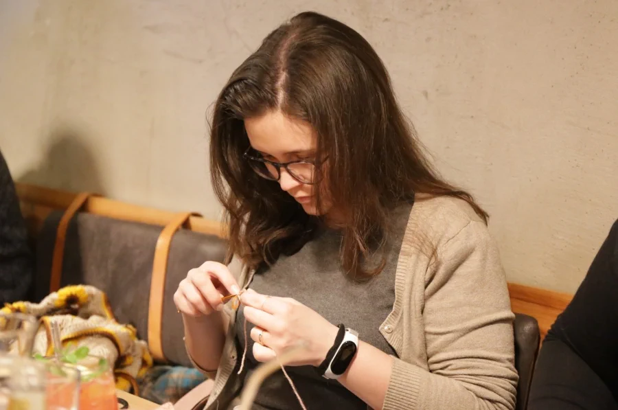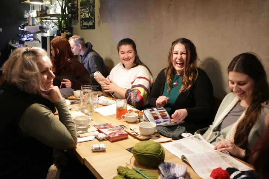 Vcházím do kavárny Atria a na jednom ze stolů už vidím shluk klubek a háčků. Já jsem sice tyhle dvě věci držela v ruce jenom jednou, přesto si ale poměrně věřím, protože jestli si dobře vzpomínám, háčkování nebylo až tak náročné.