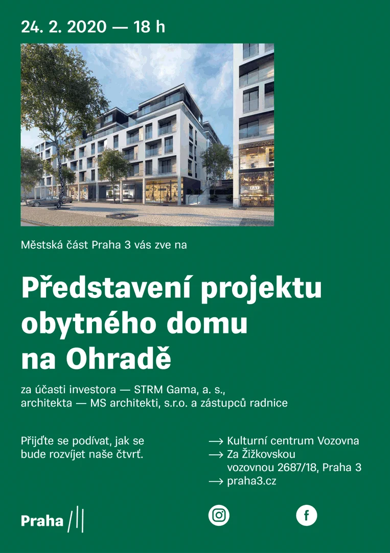V KC Vozovna budde za účasti investorů STR Gama, a. s., architektů OMICRON a zástupců radnice představen projekt obytného domu na Ohradě, který vyroste na místě, kde se nyní nacházejí Zahrádky Žižkov. Návštěvníci budou mít možnost seznámit se s novou podobou místa, které ve velkém měřítku promění dosavadní křižovatku. V současné chvíli je projekt před podáním dokumentace pro územní rozhodnutí a stavět by se mělo v roce 2022.