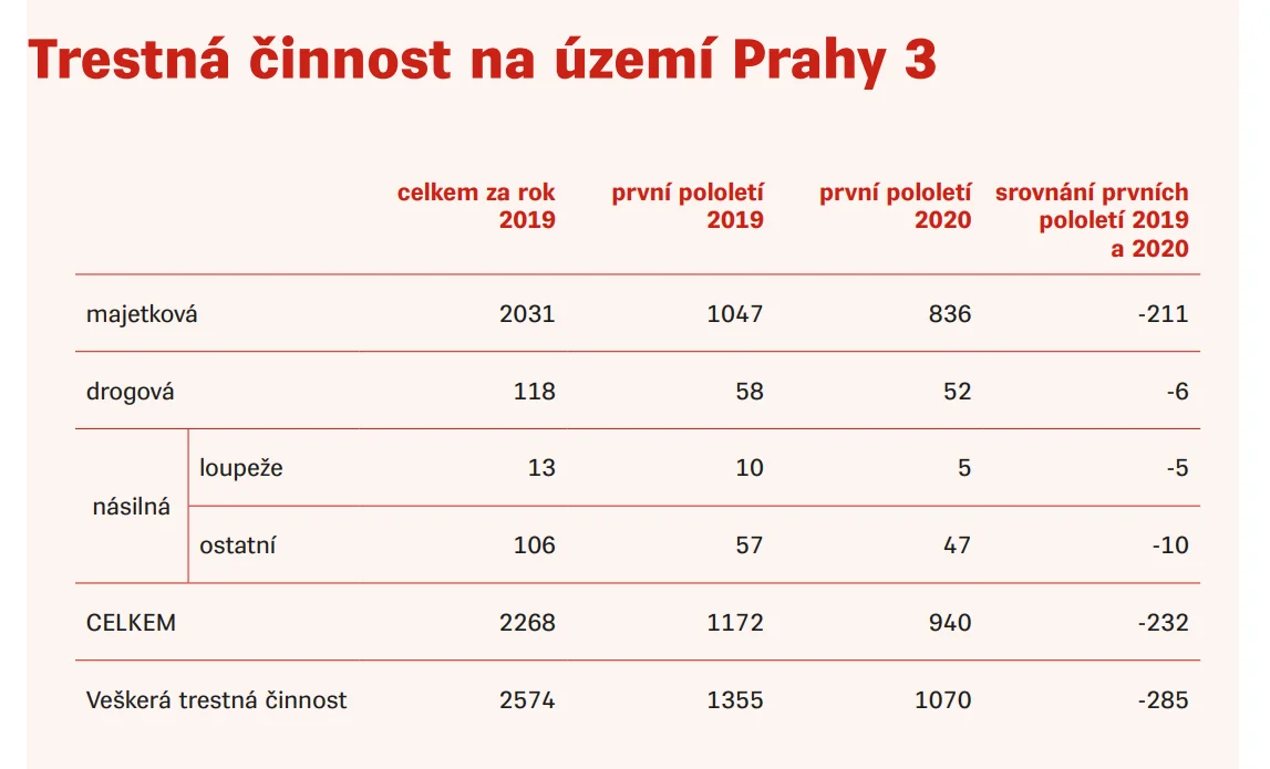 Kriminalita hlavního města soustavně klesá a Praha 3 není výjimkou. K poklesu trestné činnosti letos přispělo i vyhlášení nouzového stavu.