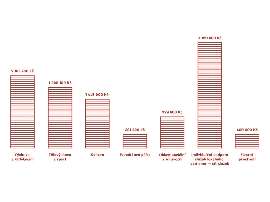 O dotace se přihlásilo o třetinu víc žadatelů než loni. Radnice nakonec podpoří 218 projektů částkou 10,2 milionu korun. Na výchovu a vzdělávání vyčlenila téměř 2,2 milionu korun, na sport necelé dva miliony. Na programy realizované v rámci sítě místních služeb dá 3,2 milionu. To se týká například aktivit komunitního centra Paleček, domu dětí a mládeže Ulita nebo klubu Remedium.