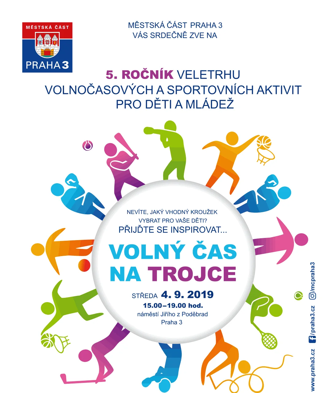 Nevíte, jaký vhodný kroužek vybrat pro svoje děti? Na náměstí Jiřího z Poděbrad představí 4. září svoji činnost organizace z Prahy 3, které se zabývají volnočasovými a sportovními aktivitami. Prezentace se koná od 15 do 19 hodin.