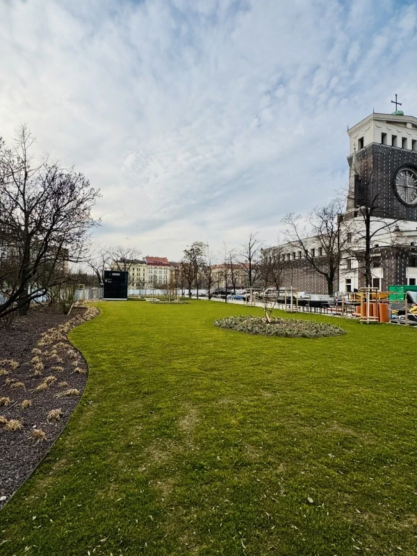 Osetí trávníkových ploch severně a západně od kostela a u vjezdu do podzemních garáží.