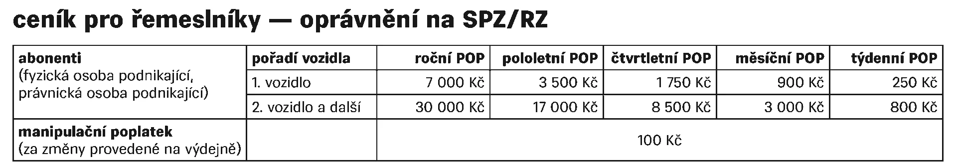 Na kupní smlouvu je možné provést pouze dočasnou změnu RZ (nebo trvalou změnu, pokud je zbývající platnost aktuálního POP do 3 měsíců). V on-line portálu je možná tato dočasná změna až na 16 dní, zdarma a okamžitě, na klientském centru pak za manipulační poplatek 100 Kč