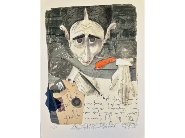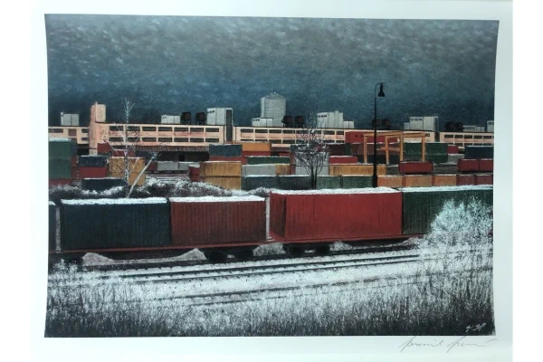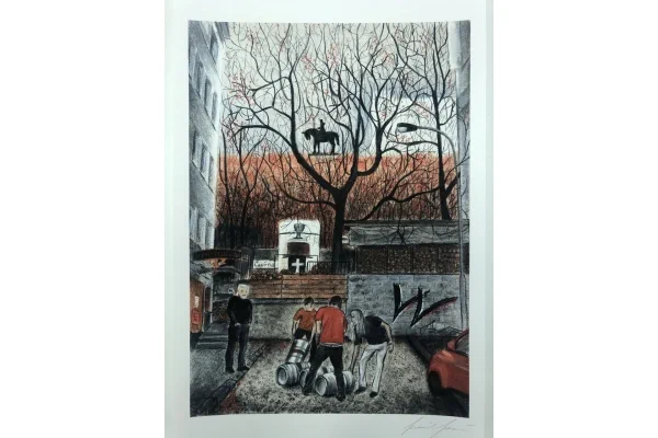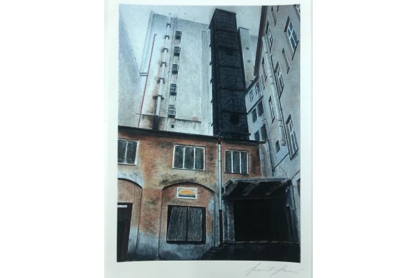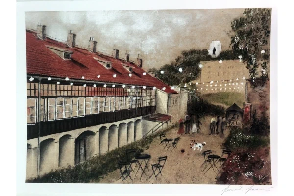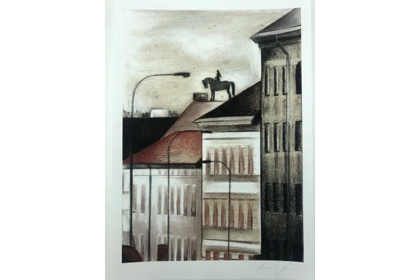 Litografie „Zátiší s kostelem“ — Pavel Beneš